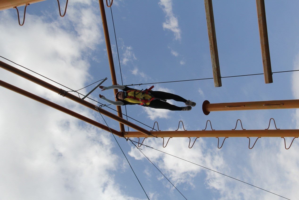 上午的分隊活動結束,下午是個人高空挑戰活動和團隊合作項目,最后的徒手攀爬高4.5米畢業墻讓大家印象最為深刻,挑戰開始前我們推選隊長,她帶頭討論攀爬順序和方案,第一次挑戰犯規后隊長向隊員一一致歉、鞠躬、俯臥撐,隊中有人默默的逝去眼角的淚水。但是西亞航空的全體員工沒有氣餒,團結一心,重新制定方案,再次挑戰,最底層的隊員,滿臉汗水,咬著牙,忍著疼痛,只為將肩上的隊員運送上頂臺,最終我們以當時挑戰擬定時間40分鐘,提前了32分10秒用時7分50秒完成了21人的徒手爬墻。這個項目告訴我們,團隊中只有大家團結一心、不畏苦難、聽從指揮就能跨越一切看似不可能的困難。