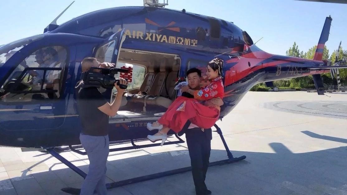 工作人員表示:空中婚禮,直升機(jī)接親這種方式,是新時(shí)代下的一種消費(fèi)趨勢,越來越受到新人們的青睞,生活在霍爾果斯的人民很幸福,可以在家門口享受到價(jià)值6000多萬的高端直升機(jī)接親服務(wù),由霍爾果斯文旅公司負(fù)責(zé)市場運(yùn)營,西亞航空執(zhí)飛。還開通了可克達(dá)拉草原驛站至福壽山、圖開沙漠、薰衣草基地的定制航線,為顧客提供空中旅游和婚紗攝影飛行服務(wù)。