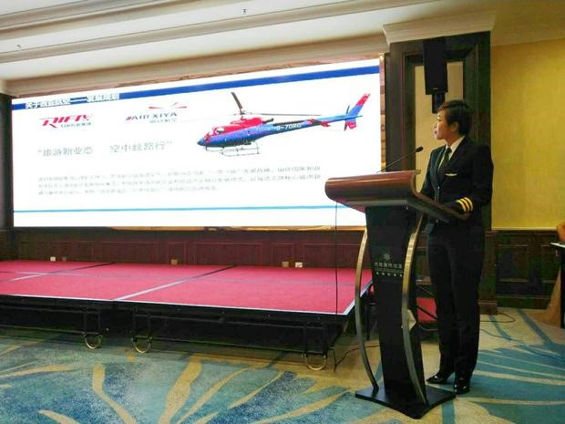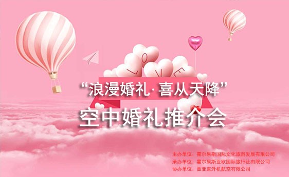 2018年10月30日,西亞直升機航空有限公司攜手霍爾果斯國際文化旅游發(fā)展有限公司在伊寧市天緣國際大酒店舉辦“浪漫婚禮·喜從天降”為主題的“空中婚禮”推介會。