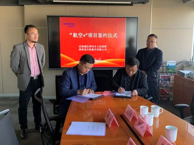達坂城區委常委潘斌、達坂城西溝鄉鄉長海建新分別與西亞航空總經理盛宇簽訂了《“航空+”項目戰略合作協議》、《“航空+”項目合作協議》。